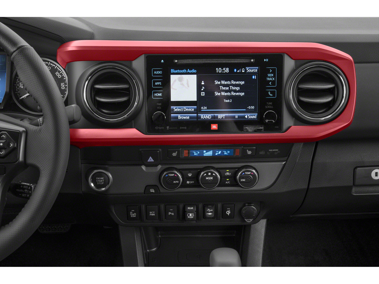 - Radio: Entune Premium w/AM/FM/CD/Nav/App Suite -inc: 6 speakers, 7" high-resolution touch-screen display w/split screen, auxiliary port, USB media port, Siri eyes free, advanced voice recognition, Bluetooth® hands-free phone capability, phone book access and music streaming, cache radio, HD Radio, HD predictive traffic and doppler weather overlay and SiriusXM satellite radio w/complimentary SiriusXM All Access 90-day trial subscription included